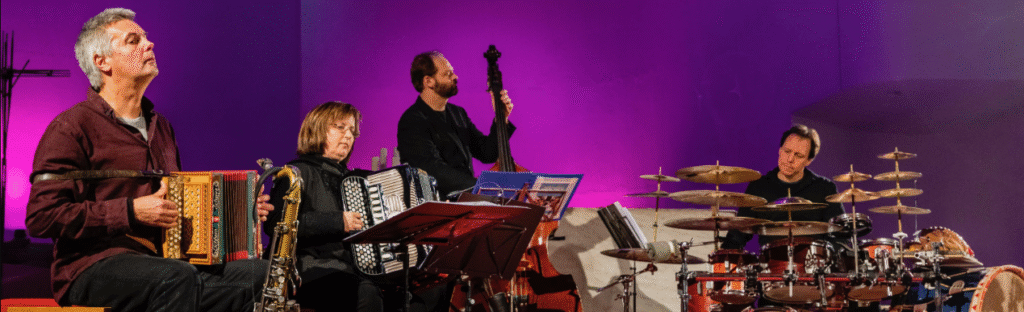 Albin Brun (Sax, Schwyzerörgeli), Patricia Draeger (Akkordeon, Flöte), Claudio Strebel (Kontrabass), Markus Lauterburg (Schlagzeug, Perkussion), Marian Rosenfeld (Klavier) und Anastasia Schmidlin (Klarinetten) präsentieren zusammen mit dem Vokalensemble Luzern ein aussergewöhnliches Konzertprogramm: Martín Palmeris Misa a Buenos Aires und die Uraufführung von Ishtar des Zentralschweizer Jazzmusikers und Komponisten Peter Sigrist.